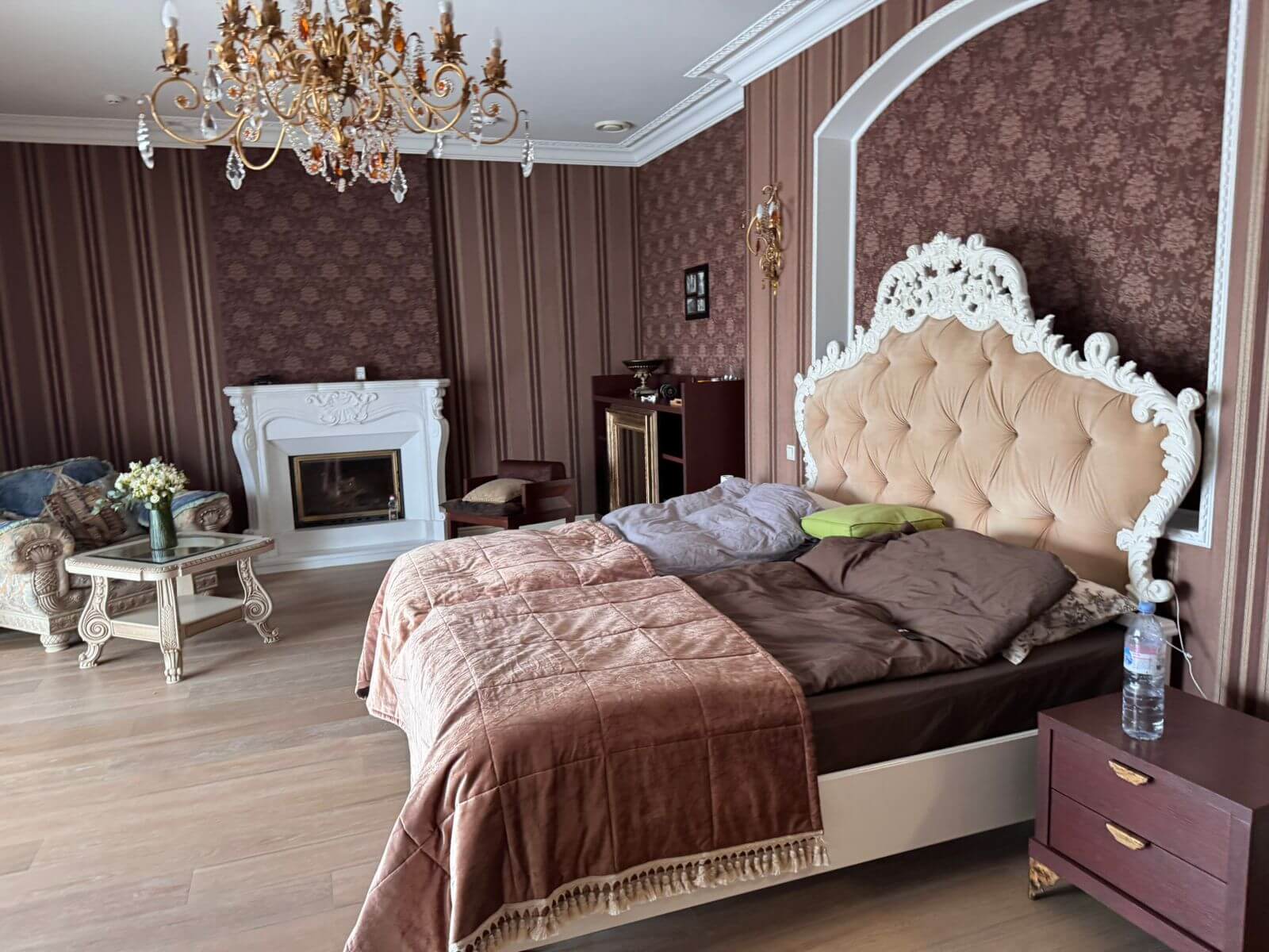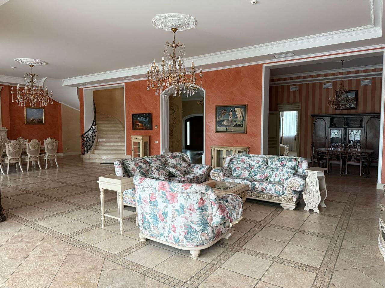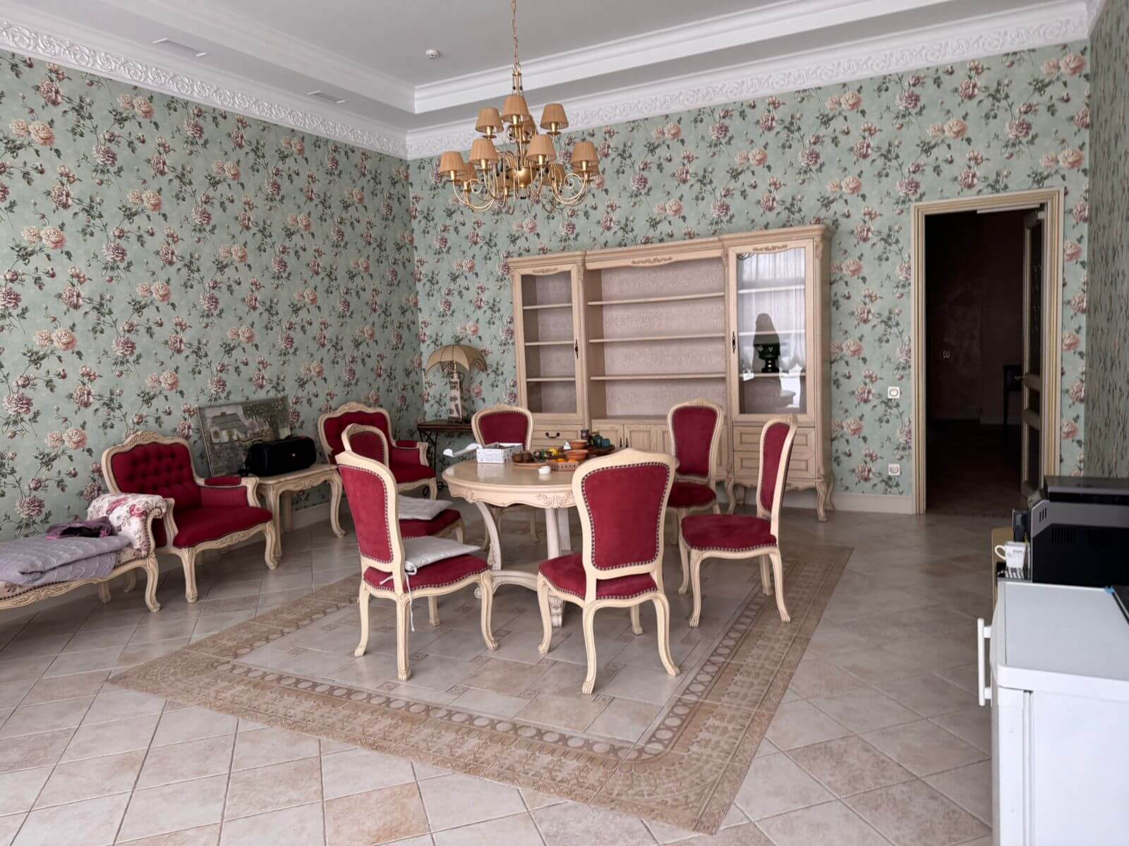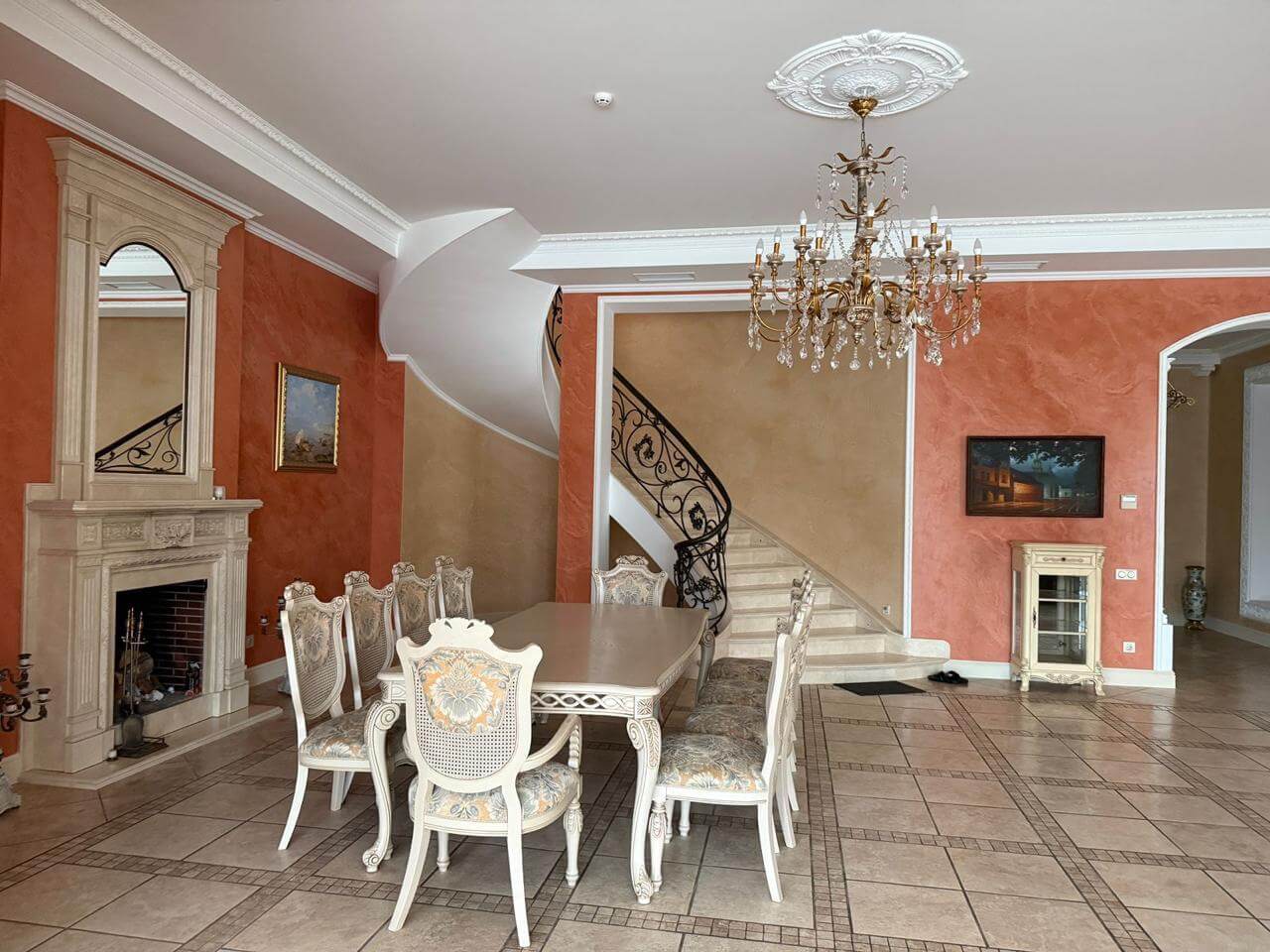 The residence covers a total area of 883 sq m and spans two floors, with a carefully designed, functional layout. A spacious 154.6 sq m living room with a fireplace is the central feature of the house, creating an atmosphere of warmth and distinction. The residence includes eight bedrooms and ten bathrooms, as well as a dedicated room for cosmetology treatments and massage.