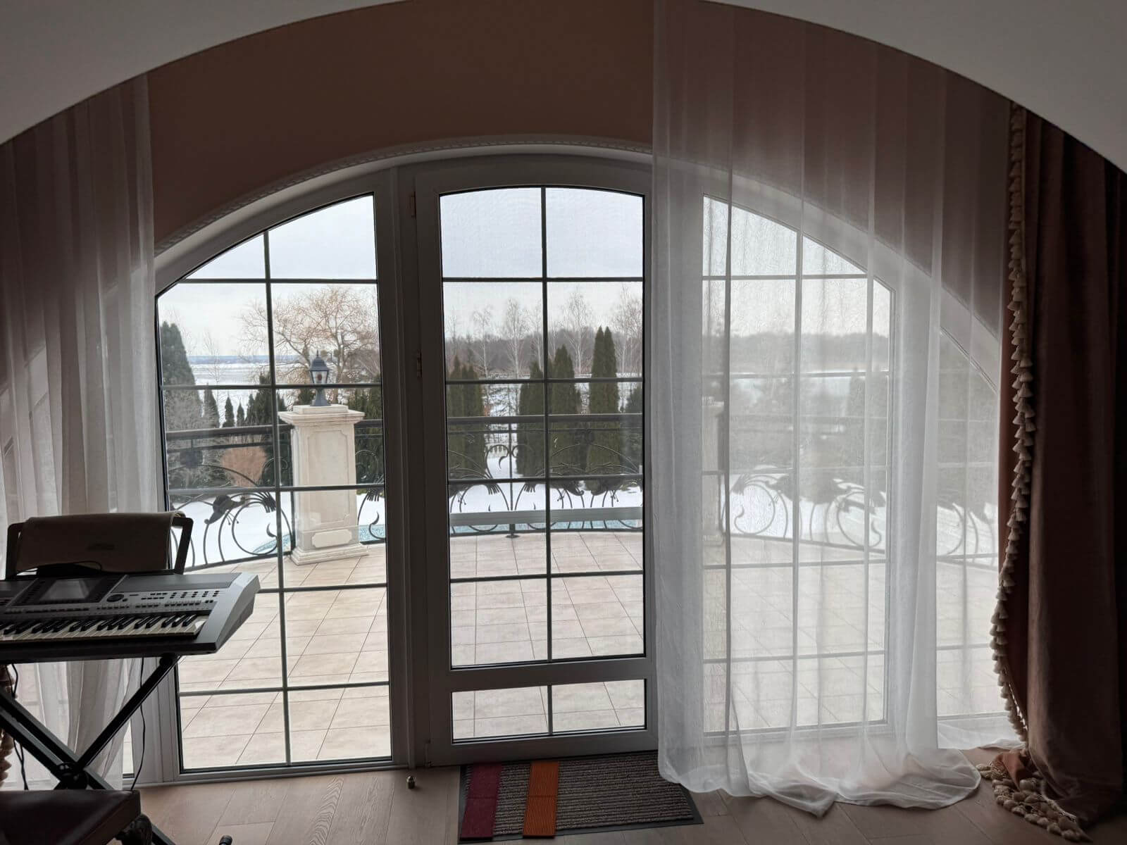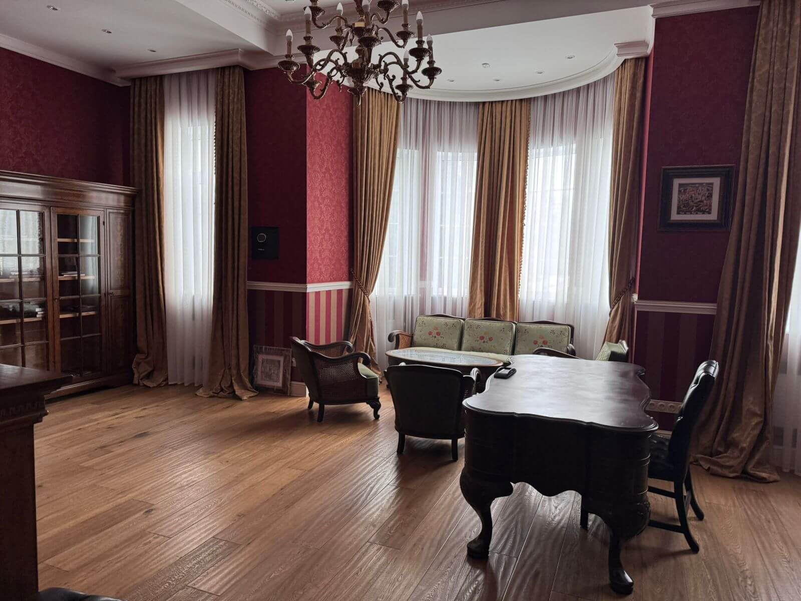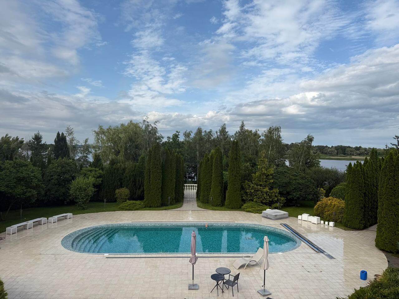 The interiors follow a classic, refined style and incorporate high-quality materials throughout. Windows and balconies offer panoramic views of the Dnipro River and the estate’s landscaped grounds.