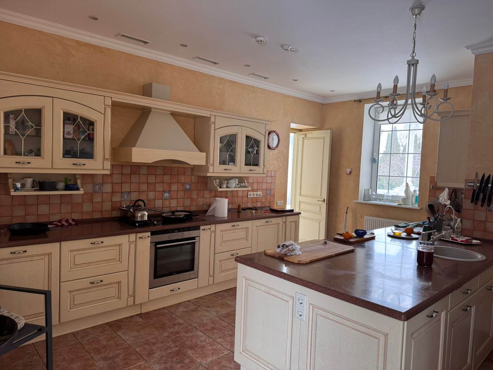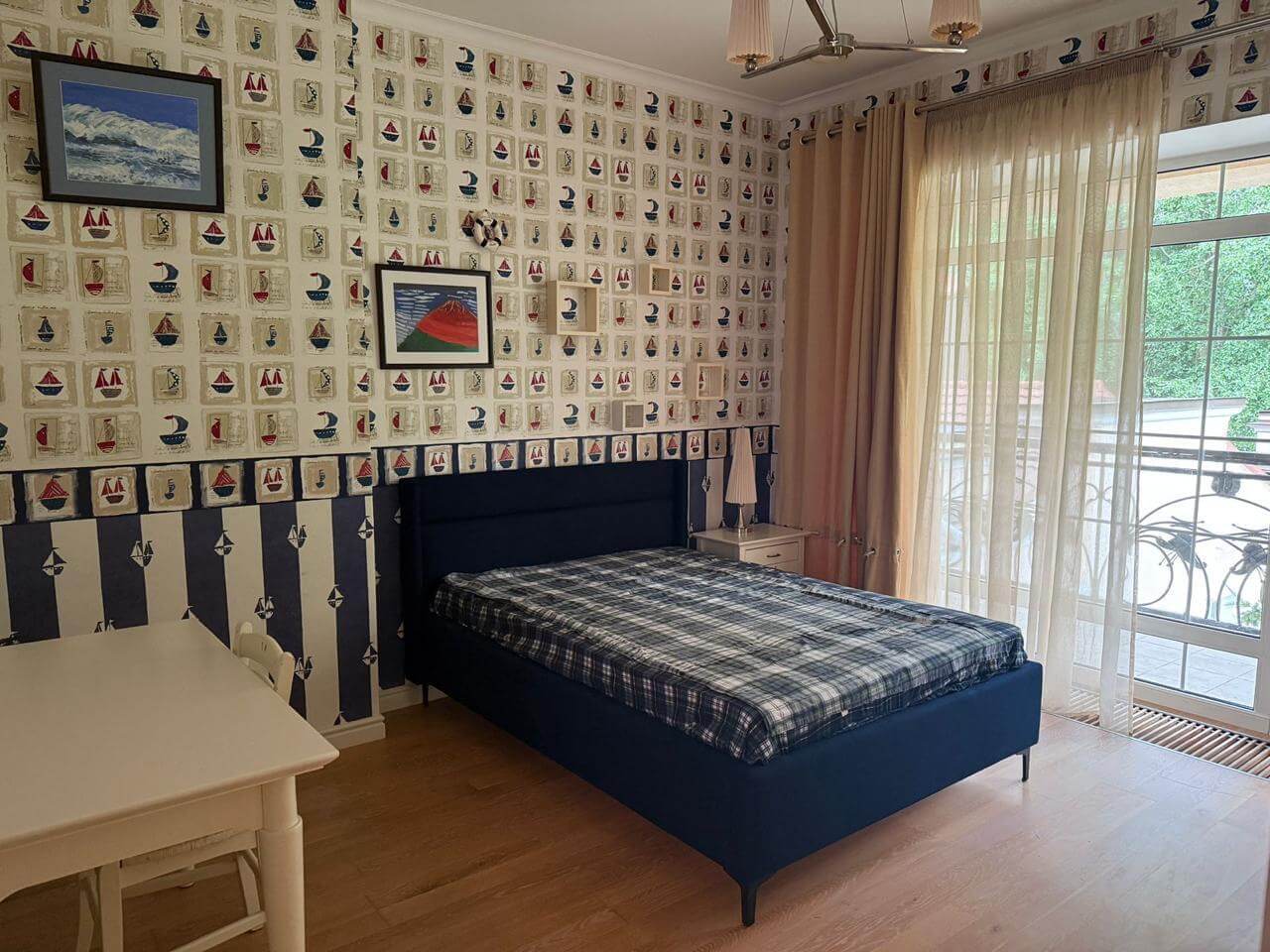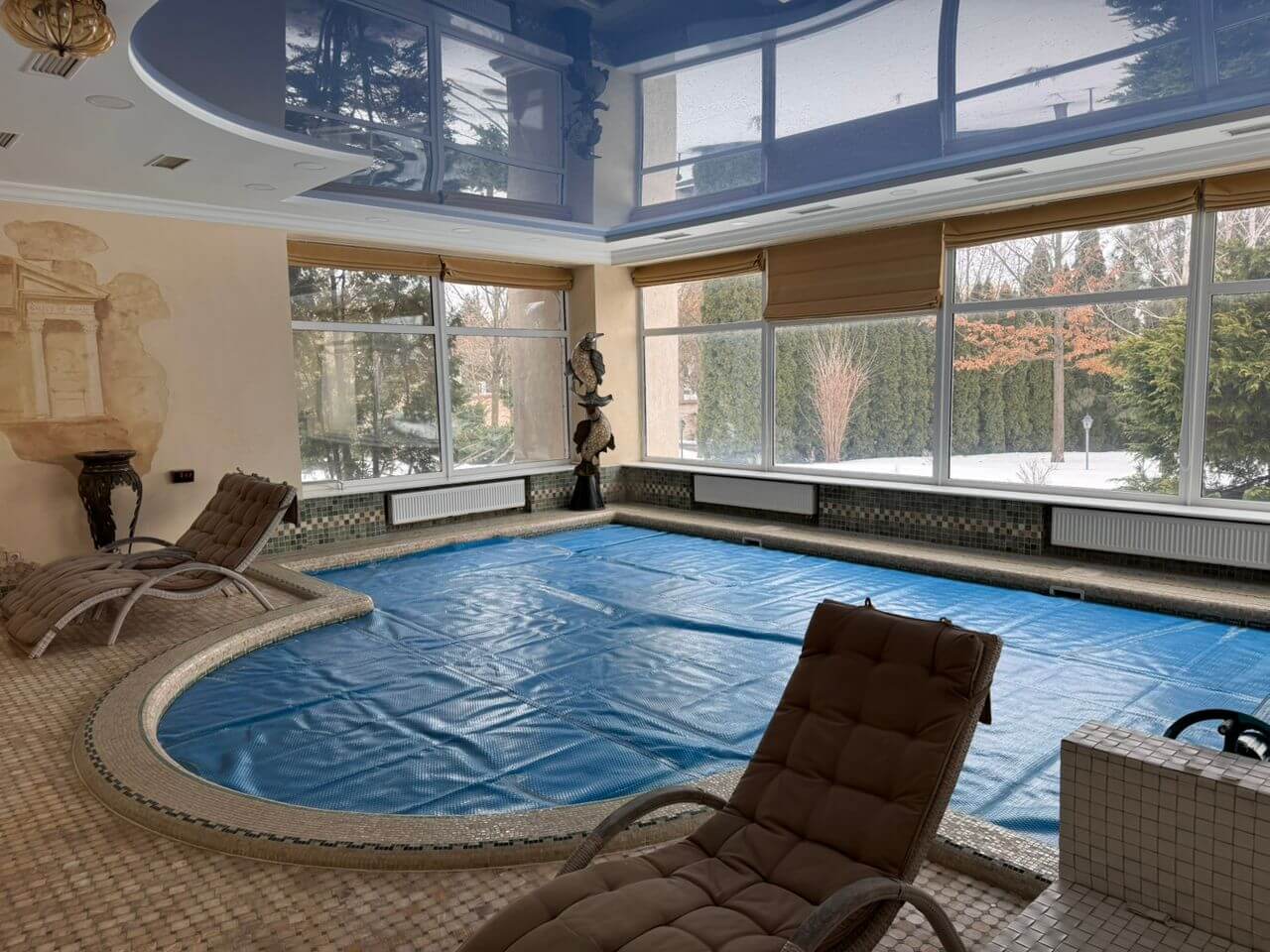 The interiors follow a classic, refined style and incorporate high-quality materials throughout. Windows and balconies offer panoramic views of the Dnipro River and the estate’s landscaped grounds.