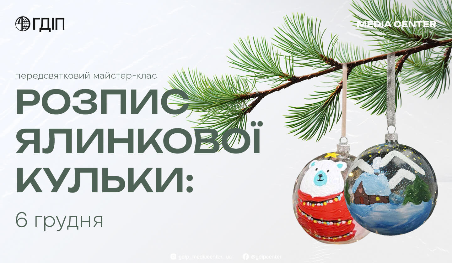 Майстер-клас проходитиме в стильній артстудії в самому серці Києва, звідки відкривається неповторний краєвид на Софію Київську. Тут панує затишок, натхнення та передчуття новорічного дива. Для роботи буде надано всі необхідні матеріали: ялинкові кульки, фарби, пензлі, блискітки тощо. Готовий виріб кожен учасник забере одразу із собою. Цей майстер-клас стане чудовою нагодою поринути у чарівний світ яскравих кольорів, новорічної фантазії і віри в різдвяні дива.