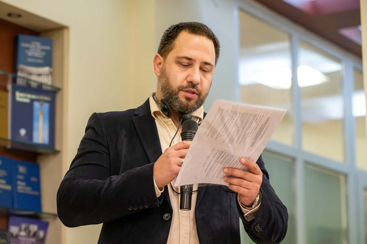 Вступним словом відкрили конференцію співмодератори: голова ГО «Український центр миробудівництва» Денис Бордіян та офіційна представниця громадського руху «За звільнення М. Саакашвілі» в Україні, очільниця неурядової організації «Молодь за європейське майбутнє» Манана Андгуладзе.