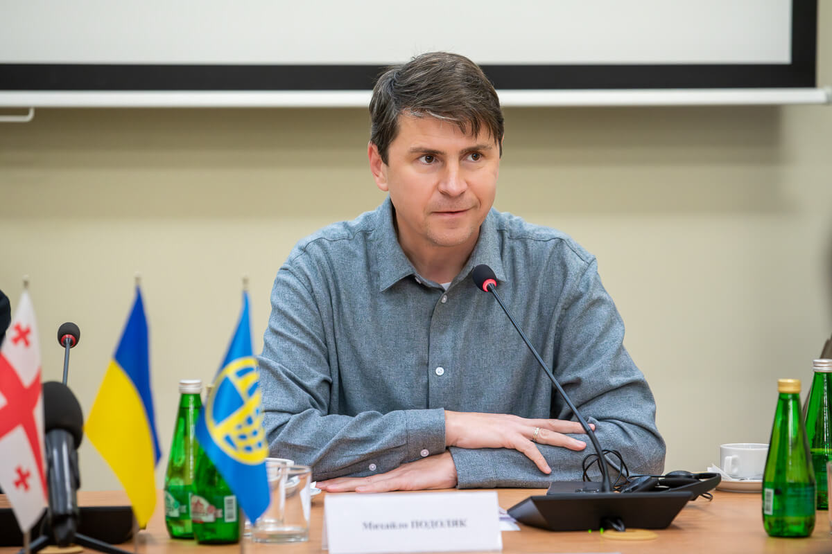 — про символізм постаті третього Президента Грузії та його жертовність висловився Михайло Подоляк. Він також звернув увагу учасників конференції на загрозі російського імперіалізму та розповів про історію тиску на Грузію від відкритої агресії до «м’яких» операцій, назвав путіна джерелом загрози й доповнив, що ув’язнення М. Саакашвілі є символом кампанії проти країни. Пан Подоляк відзначив роль репресованого політика як історичної фігури, яка повернула репутацію своєї батьківщини та готова платити велику ціну за свободу, й водночас розкритикував нинішній проросійський режим Грузії за зраду національних інтересів та віддалення від Заходу, закликав не боятися і вести боротьбу до кінця, а також висловив віру в майбутнє Грузії та України й надію, що рано чи пізно заслужена відплата настигне зрадників.