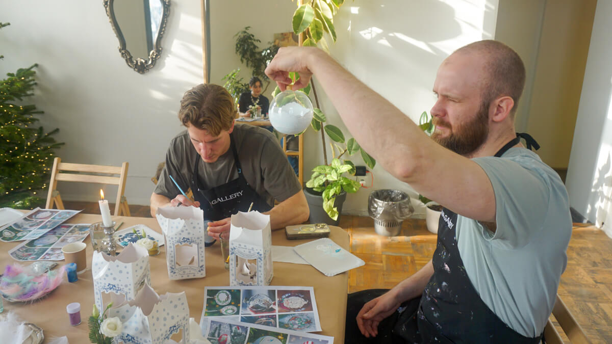 У суботу, 6 грудня 2025 року, працівники дирекції «Медіацентр» організували передсвятковий майстер-клас «Розпис ялинкової кульки: мистецтво створювати дива» у стильній артстудії в самому серці Києва, звідки відкривається неповторний краєвид на Софію Київську. У художньому дійстві взяли участь співробітники Представництва Європейського Союзу в Україні.